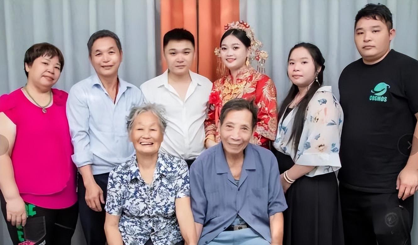 全红婵二哥放出新婚全家福照片,大伯娘戴着超大的翡翠项链出镜,父亲和哥哥还有嫂嫂,爷爷奶奶一起合影,超幸福温馨的画面。