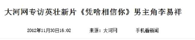 参考资料:大河网:2012-11-30:大河网专访英壮新片《凭啥相信你》男主角李易祥