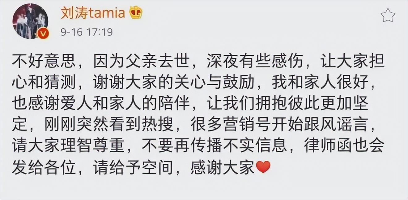 有传言说是因为王珂又一次投资失败,但随后刘涛出来主动辟谣,表示是因为自己的父亲去世所以才情绪不佳,并非因为王珂。