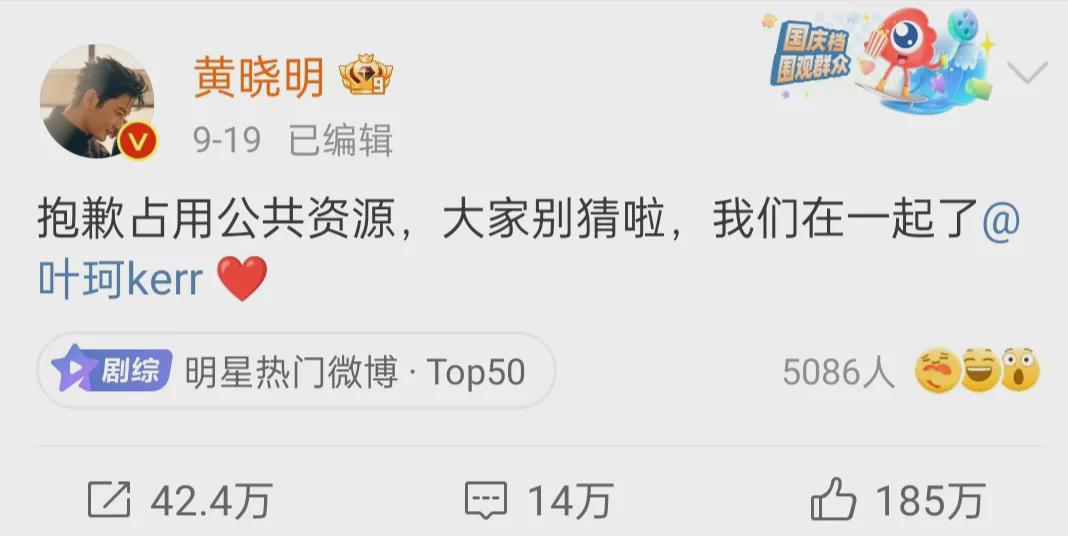或许她也想到了会有这么一天,因为跟她谈恋爱的不是别人,是黄晓明。