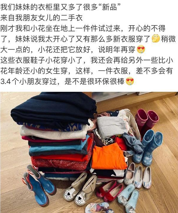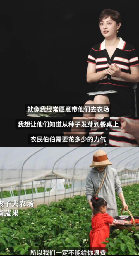 她有空就会跟孩子去农场观察农民种植、养殖的过程,让他们明白“粒粒皆辛苦”的意义,也会接受朋友送的二手衣服给自己孩子穿。