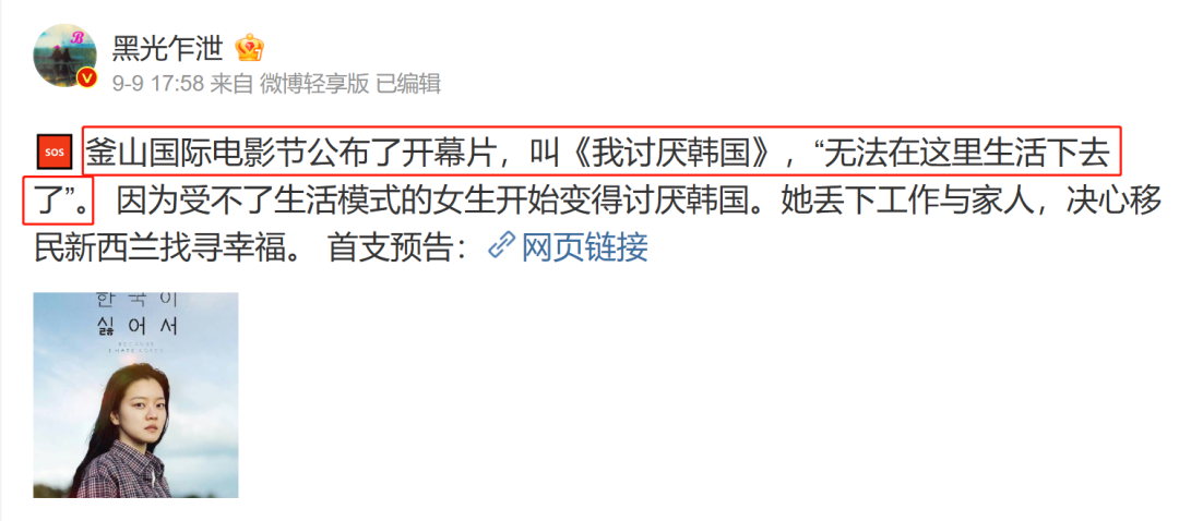 去年就有这么一部电影,光是公布了片名《我讨厌韩国》,就引起了不小的讨论。