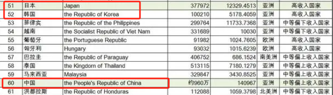 日本第51位,韩国第52位,中国则是第60位。