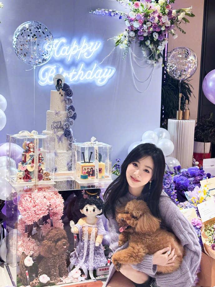 杨紫一共晒出了3张照片,一张照片中她抱着一只狗,另外两张照片是在生日会现场拍摄的照片。
