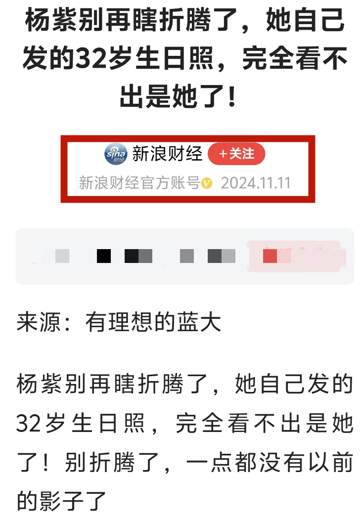 值得一提的是媒体新浪财经还发文吐槽杨紫的照片,只不过,这篇吐槽文不是新浪财经自己的记者写的,而是引用了其他自媒体作者的文案。
