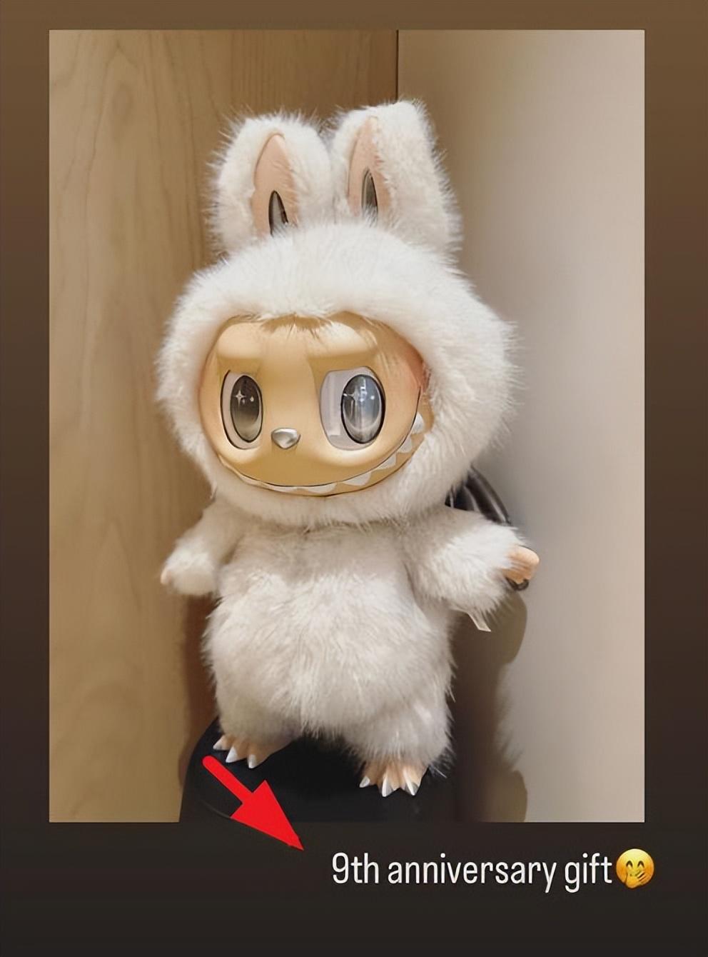 11月11日,喻虹渊在个人账号晒出了他们夫妻的9周年纪念礼物,是泡泡玛特的阴晴天使!