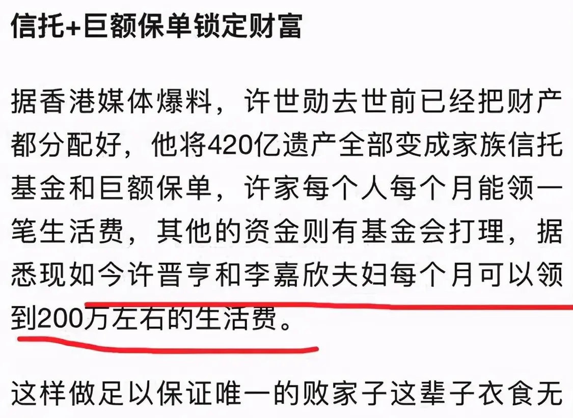 为了守护家族的百年基业,他决定把400亿资产放进信托基金里,每个月给许晋亨一家三口200万作为生活费。