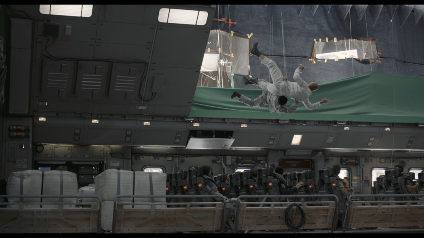 最后出现在电影开场的黑鹰直升机残骸镜头,背后从制作到损毁的过程成为了纪录片中的一条重要故事线。此外,包括门框机器人的制作、月球车、休眠舱等素材也都保证捕捉到了镜头。
