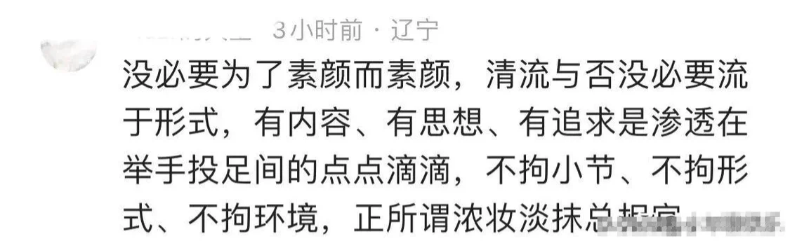 还有网友表示:起码应该化个淡妆的,不随意,最起码的尊重。