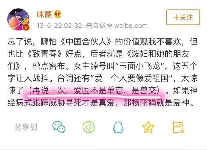 就咪蒙这过往史,大家对她的口诛笔伐,对她的作品持怀疑态度是应该的!爱国这事儿没得商量!