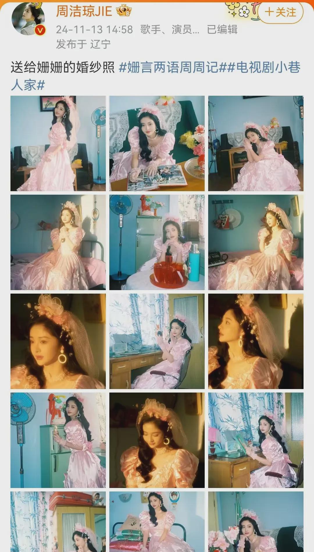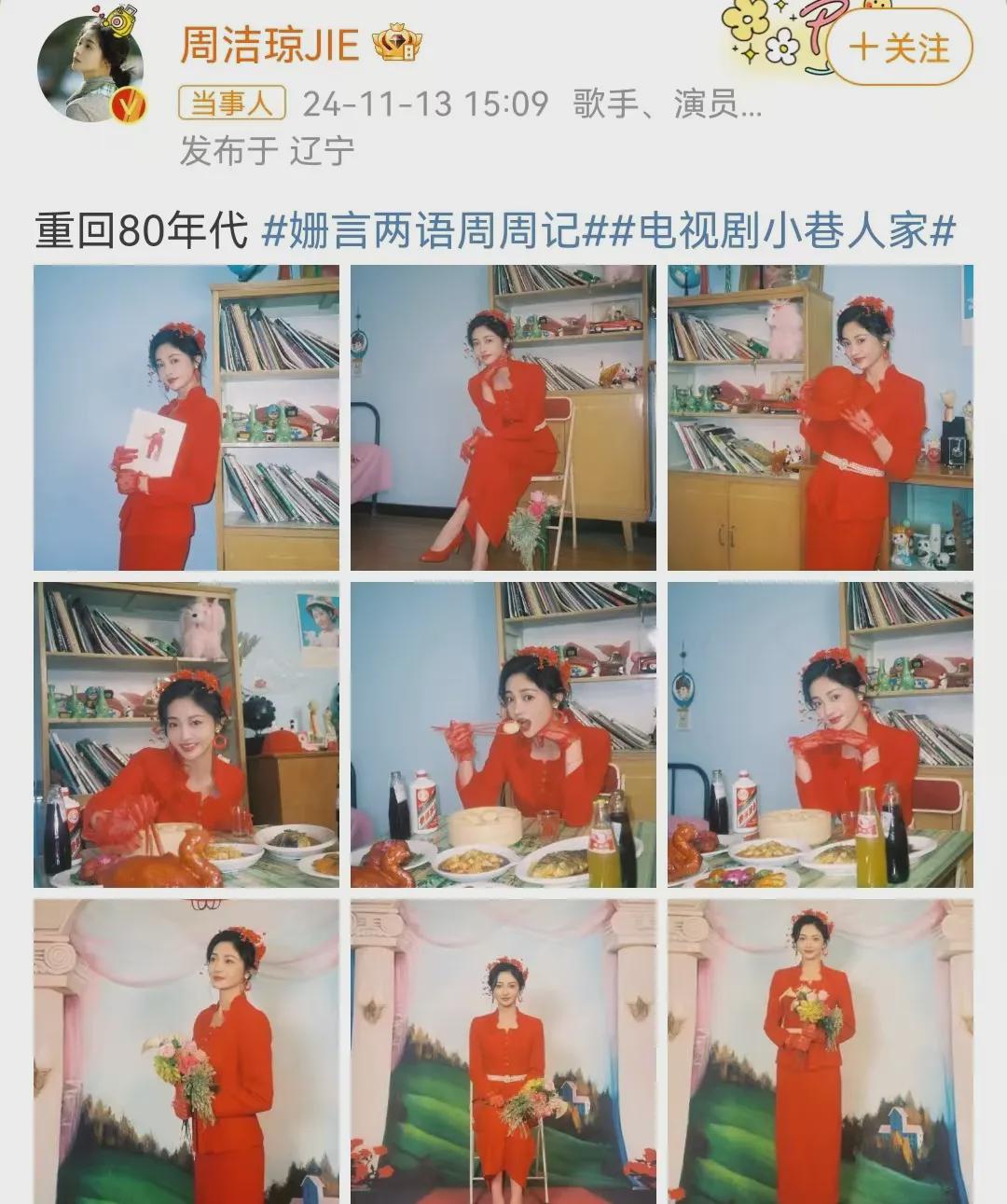 周洁琼还连续晒出了多张80年代风格的“姗姗婚纱照”和“姗姗大红婚服”,不得不夸一句,她真的很漂亮,是那种明艳照人的美。