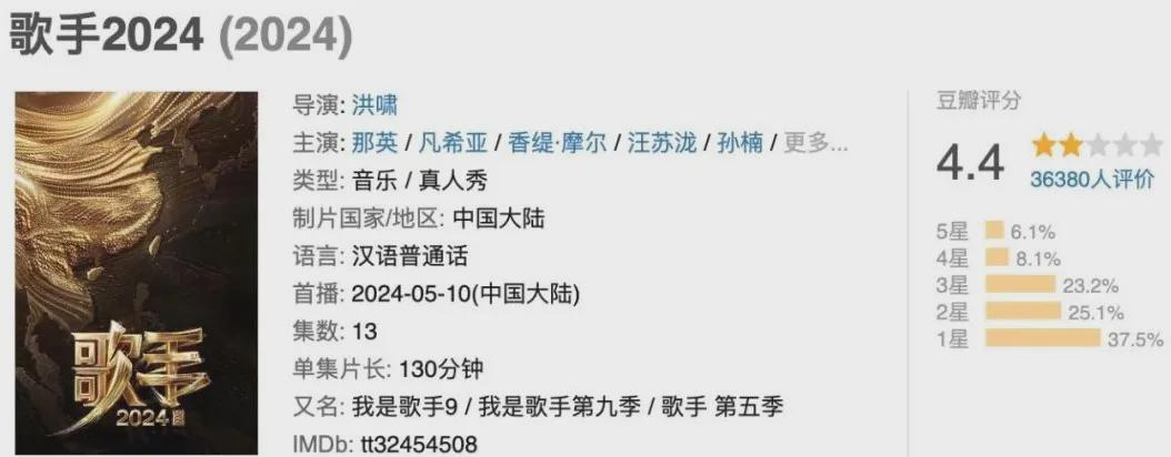 吃着北斗七行的红利,把嘉宾扩容成9人团,目的地也更有吸引力,结果豆瓣震撼得分3.9,为4.4分的《歌手2024》守住了最后一丝尊严。