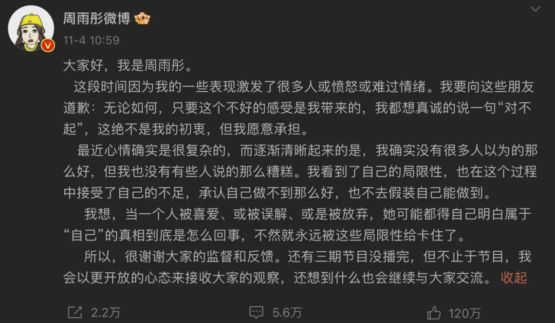 周雨彤发布的致歉作文