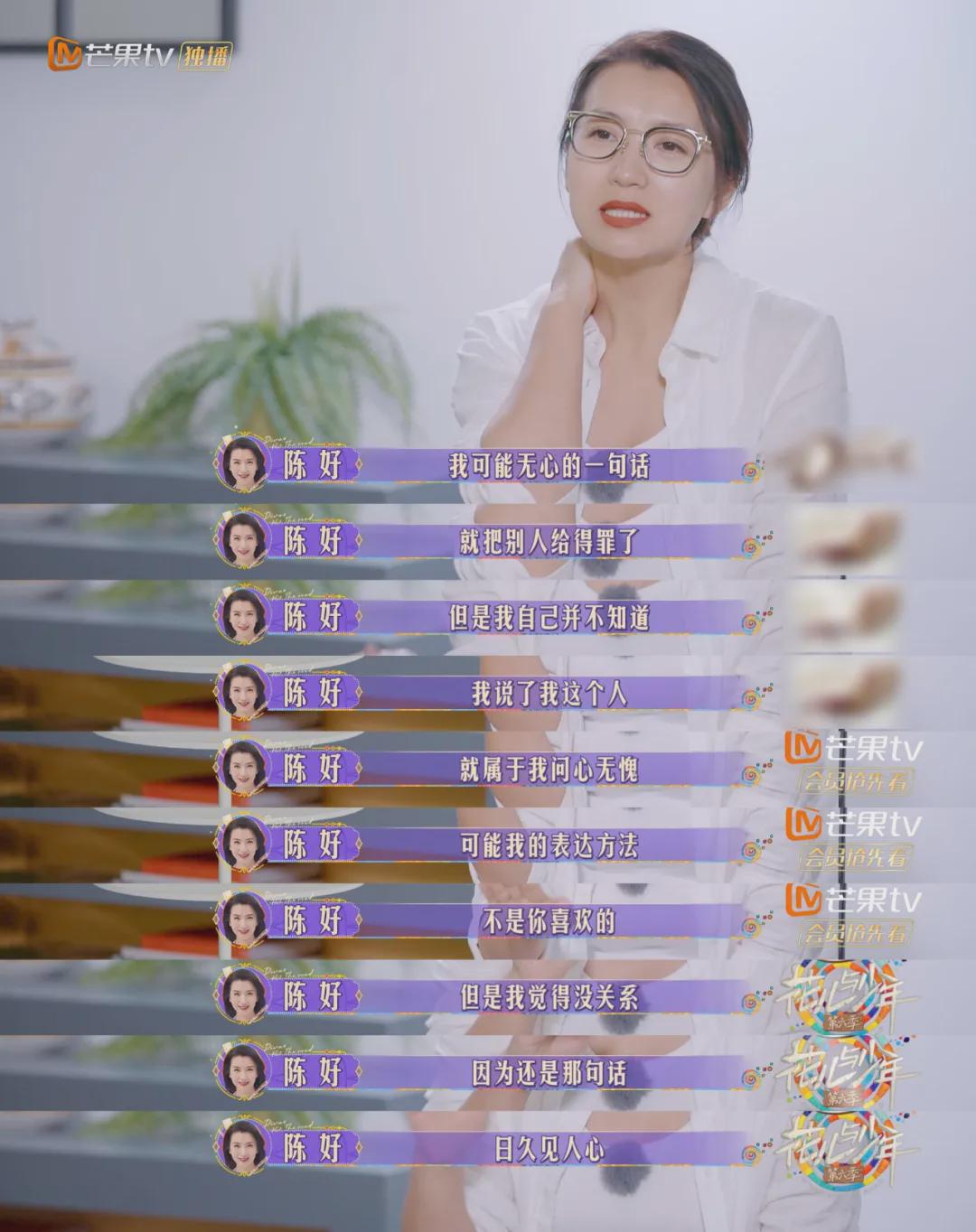 也许,陈好的方式或态度不被接纳,但她言行合一、真实不做作、坚守团队观念,不知比那位时刻把“我是大姐”挂嘴边的前辈强了多少倍…