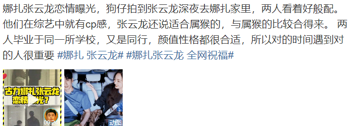 目前从话题上来看似乎是送祝福的声音更多,不过其中不乏也有别的争论,比如女方部分粉丝嚷着脱粉,而追他俩综艺的网友则觉得这对很搭。除此之外,锤爷后台还有瓜友来问张云龙不是有对象吗?怕娜扎是名不正言不顺无缝衔接当三了?这些问题咱一个个说清楚,据了解他俩真正确定关系是节目后期,有工作人员看出他俩冒粉红泡泡,但也是后来才确定这对真谈了。