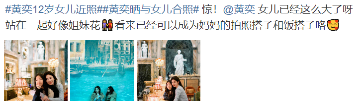 黄奕前不久发了个vlog提到自己忙完工作就立刻飞英国看女儿(她女儿现在在英国读书),有网友夸她当妈太辛苦很不容易,对女儿太好了,就算是工作那么忙也要花时间陪女儿,但也有网友觉得艺人人设太多,眼下好多热搜都是奔着营销人设去的,黄奕过去自身争议又多,近年来又是上综艺又是忙直播,根本不像是能好好照顾孩子的妈妈形象。