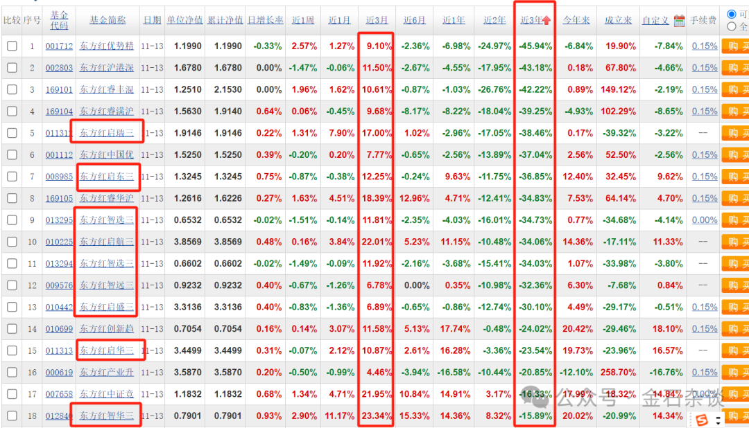 金石杂谈统计东方财富数据发现,东方红资管三年期产品在今年行情向好下近三个月收益都有一定程度的涨幅,东方红智华三年和东方红启航三年收益率都超20%。