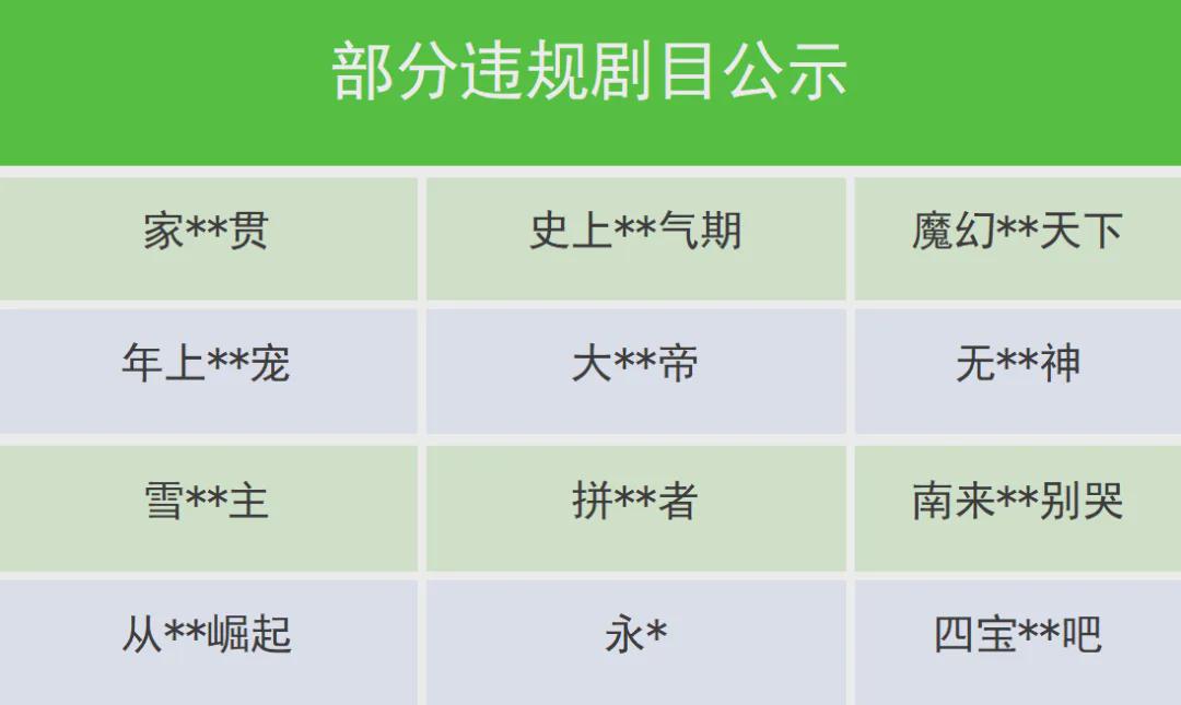 据抖音安全中心,10月部分违规微短剧剧目公示如下:
