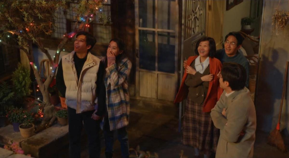 在家过年那次,外面在放烟花,黄玲没穿外套就到院子里看烟花。庄超英看见了,拿着外套给黄玲披上。