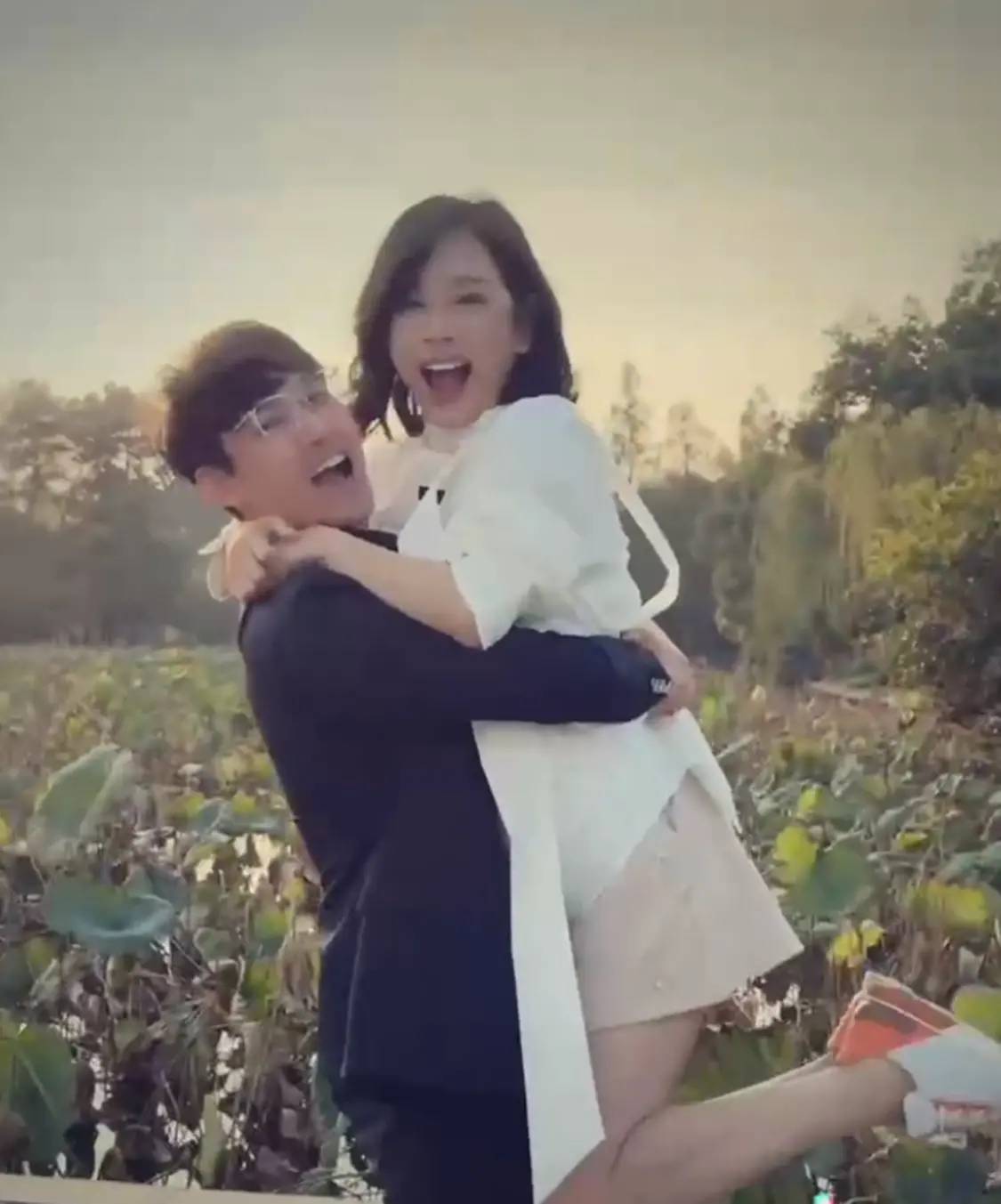 正如这次夫妻俩游西湖,张铎就宠溺将老婆抱起来。再看陈松伶,虽然她比张铎要大8岁,但在老公面前完全就是小女生姿态,被老公抱起双手紧紧搂着张铎脖子的她笑得一脸幸福。张铎也是一脸灿笑,脸上洋溢着同款笑容的两个人好有夫妻相。