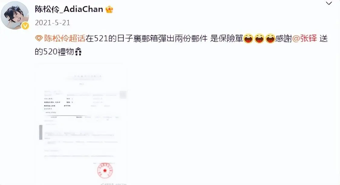 还有因为陈松伶身体原因不能生育,张铎完全不介意还给足陈松伶安全感。别人情人节都是送花送包这些礼物,张铎却给老婆送保险单,为妻子提前规划好未来养老生活,虽没有那么浪漫,但这份实在同样很打动人。