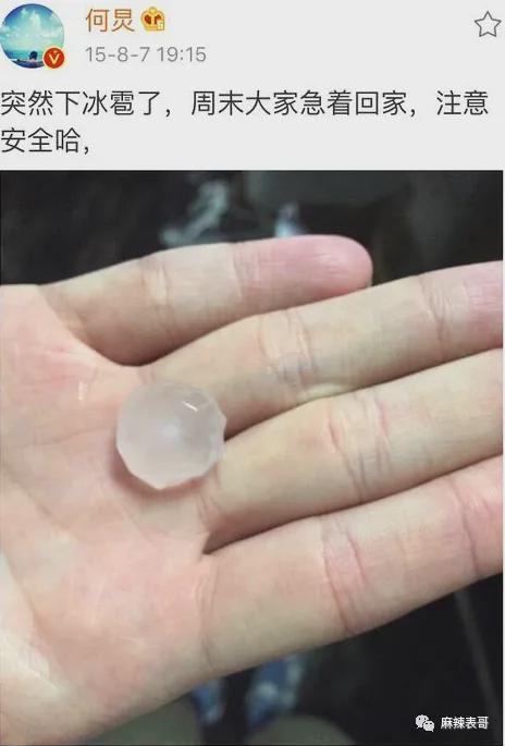 说自己穿凉鞋出门,遇到冰雹。