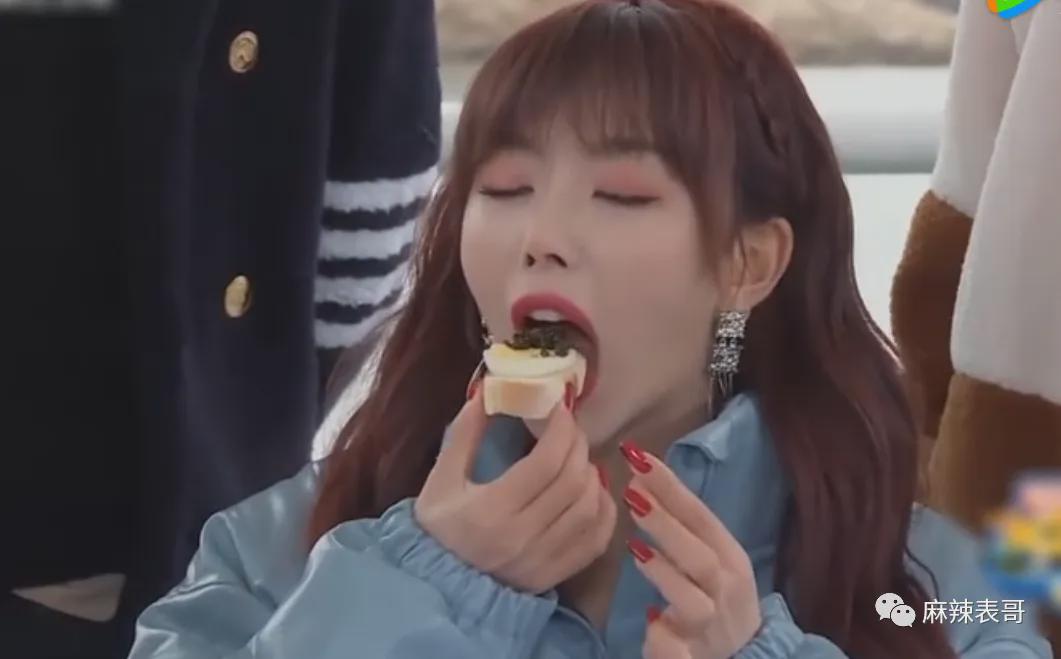 可能孔雪儿嫌麻烦或者怕观感不佳,吃到剩一半时,一口把鱼子酱给包了。