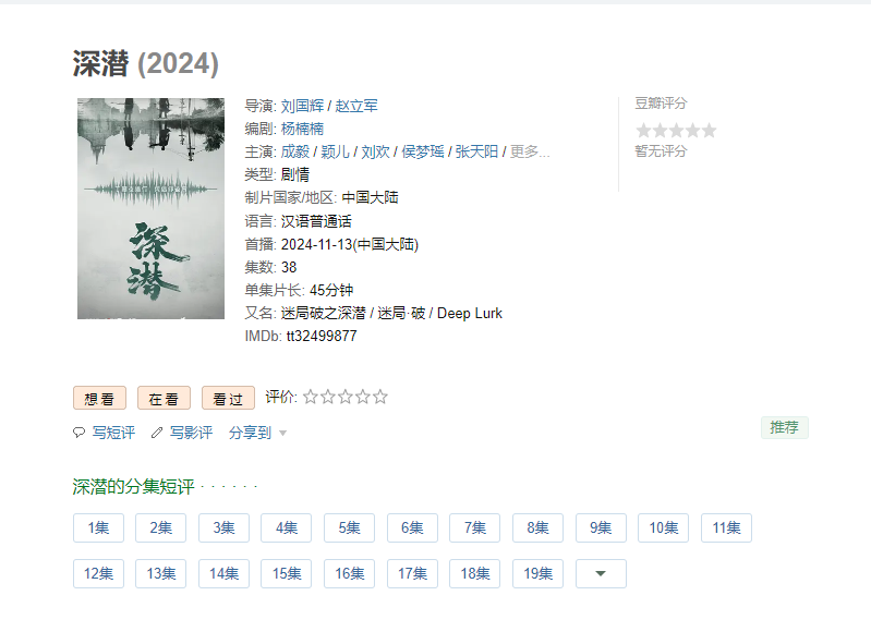 小编还发现了一个有意思的细节,电视剧《深潜》是11月13日开播的,至今也过去8天了,但豆瓣评分一直没有开放,难道是片方对自己的作品没有信心吗?