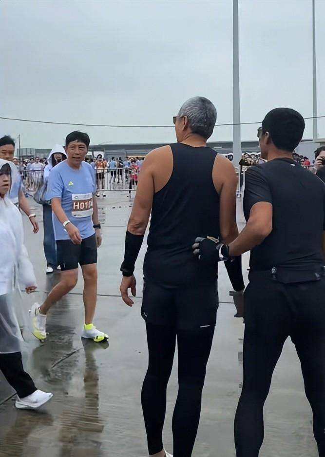 比赛当天,还下着毛毛细雨,虽然凉爽,但是地上全都打湿了,为了不打滑和乱了节奏,所以周润发就小心翼翼的均匀配速,跑完了全程。