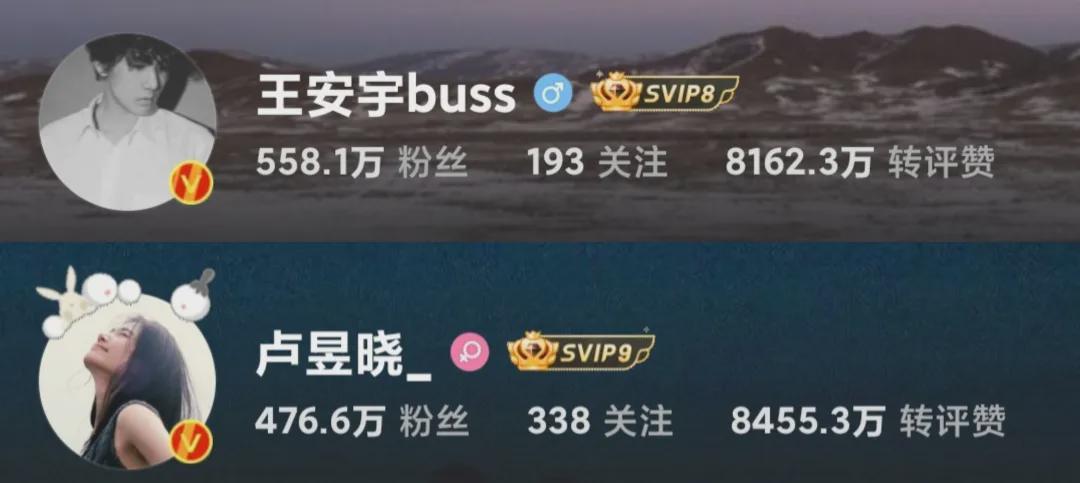 王安宇550多万,卢昱晓470多万。