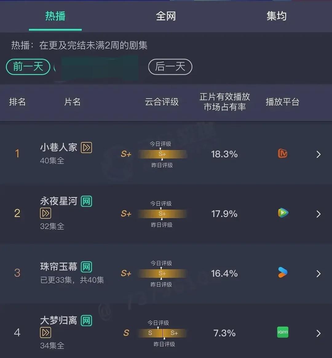 《小巷人家》收视率直接登顶。
