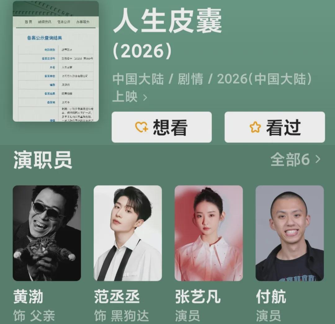 待拍电影《人生皮囊》还有黄渤帮着抬咖。