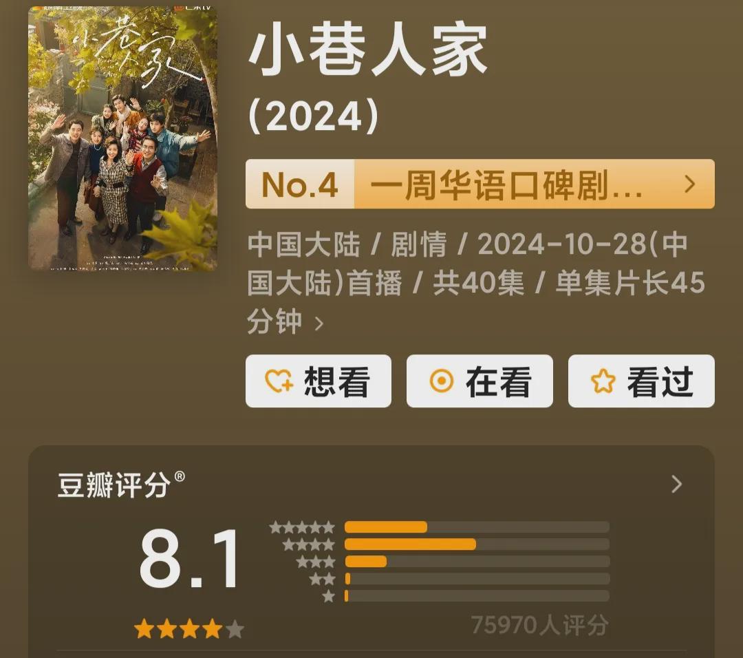 最近口碑最好的国产剧,非《小巷人家》莫属。