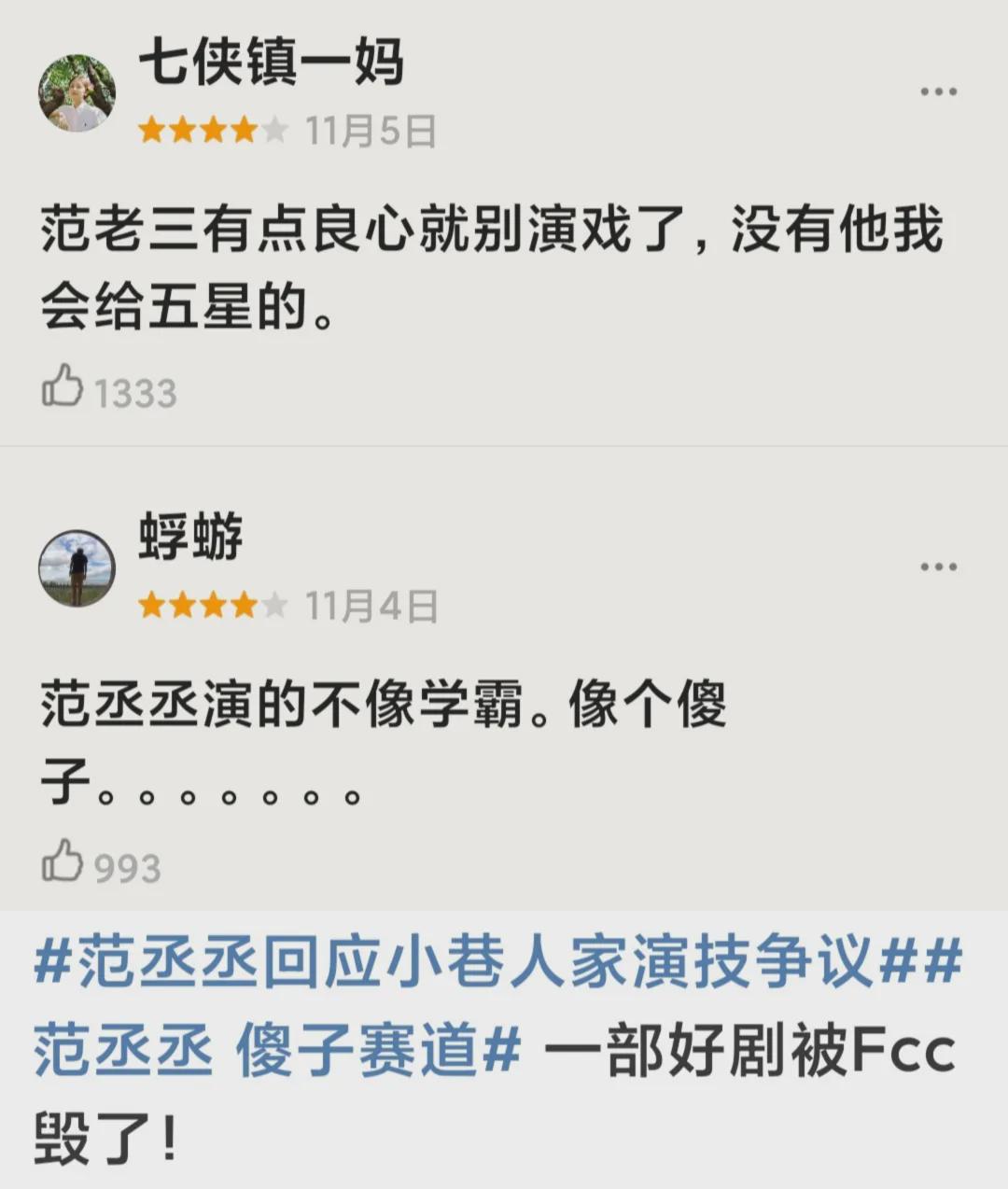 他在意是差评,还是演技,大家心里有数。