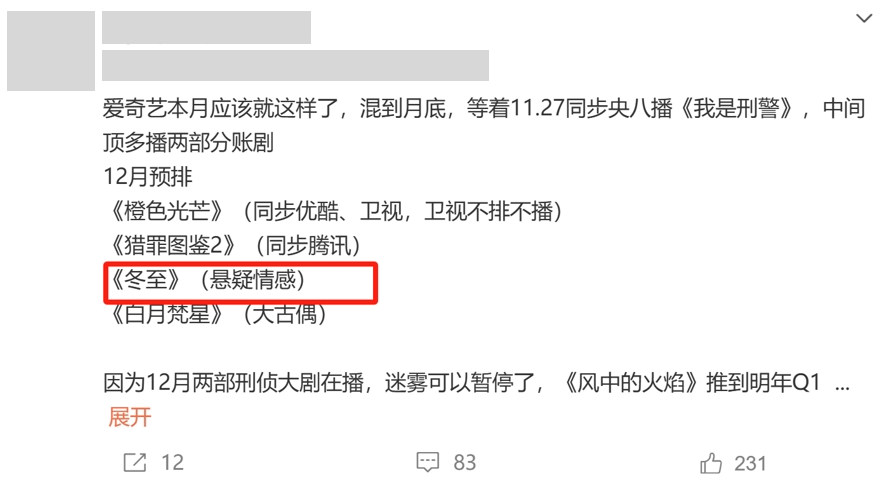 相信只要这部《冬至》顺利播出,有望在2024年底成为今年国产剧市场的最大黑马。