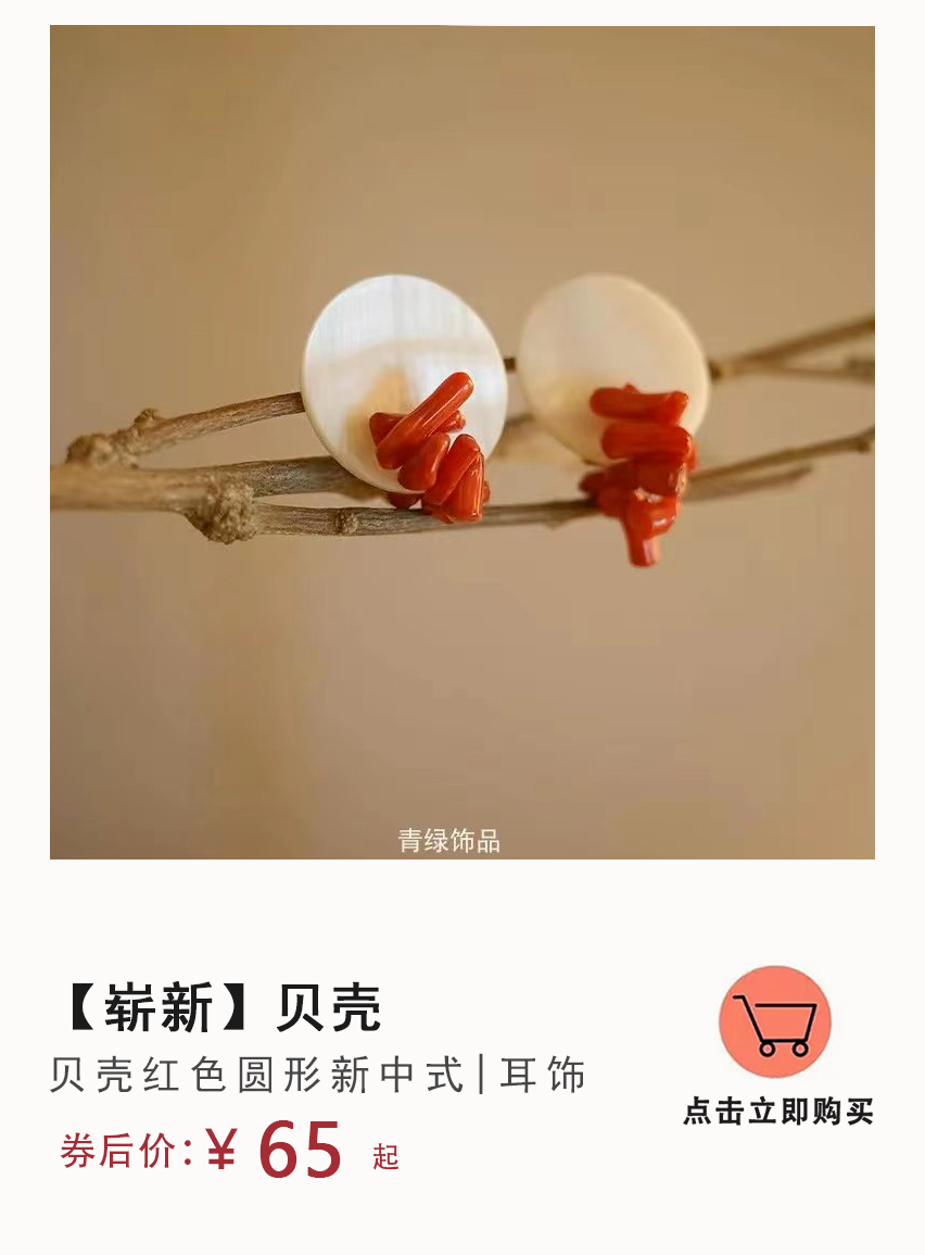 颗颗红色仿珊瑚的形状各不相同,具有提亮肤色、抓人眼球的作用。保持简单的基础上增加了小设计,起到点缀的作用,很显精致感。