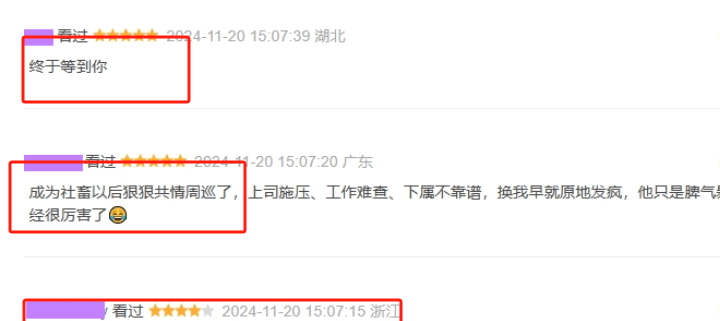 虽然不是在晚间的黄金档播放,但是不少观众却仍像嗷嗷待哺的雏鸟一般,大中午的守在电视机前,很多人更是第一时间给出了自己的五星好评。