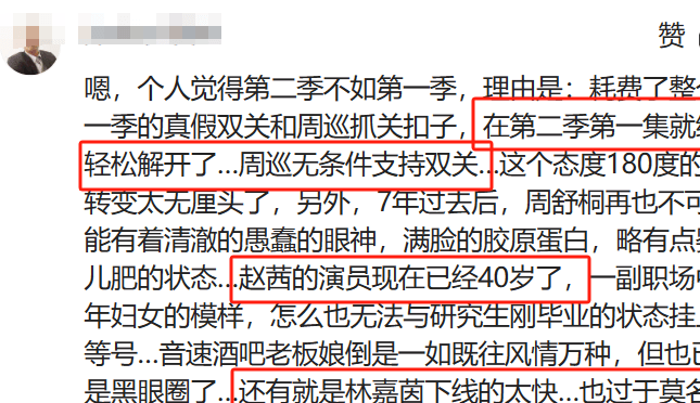 虽然关宏峰兄弟二人出狱了,可潘粤明已经老了,女配更是从一个青春少女变成了一个成熟大妈,再加上剧情衔接宛如“断层”,有种为了悬疑而悬疑的感觉。