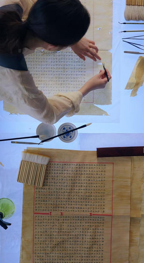 以《重回永乐大典》为例,这部短剧以「古籍修复」为叙事脉络,展现了修复师们为还原文化瑰宝《永乐大典》的艰辛努力。从残页勘查之微,到选材补缀之精,再到古法复缮之妙,都在剧中得到精准呈现。观众跟随修复师一同穿越历史长河,感受到古籍文化的厚重与传承的紧迫性,心底那根文化传承之弦被悄然拨动,共鸣回响,思绪万千。