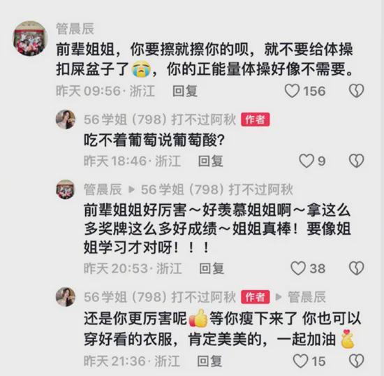 另一位体操冠军看不下去,跑评论区骂她。