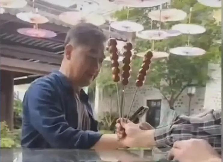 因为,有网友爆料,张默的老父亲张国立,在路边摊买糖葫芦的样子。