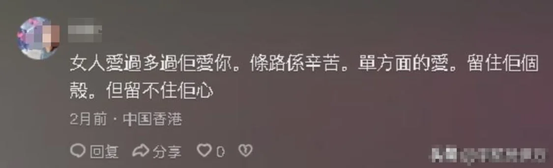 “ 女人爱过多过去爱你。条路系辛苦。单方面的爱。留住个躯壳。但留不住心”