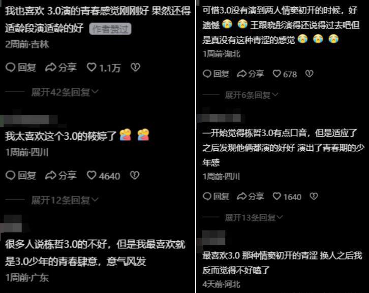 而相比于少年组的悸动,成年组虽然也演技很在线,但是效果明显不如3.0版本惊艳。