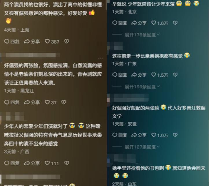 从观众积累的反馈来看,希望两位小演员单开一部校园剧的呼声都很高,足见他们的受欢迎程度。