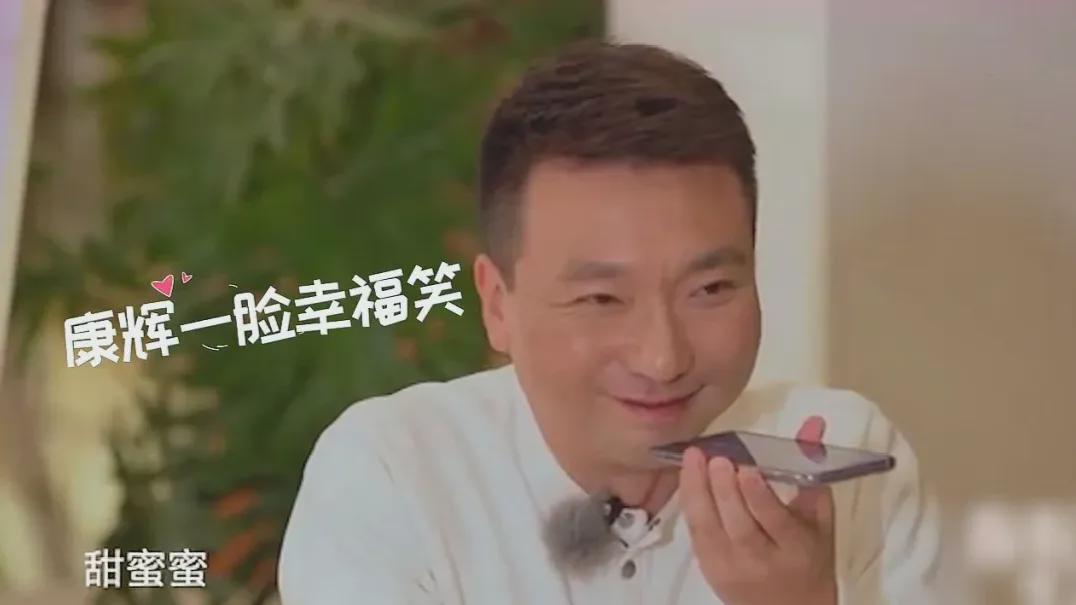 就在众人觉得他会难为情或者不好意思说出口的时候,没想到,康辉全程笑眯眯,电话接通后,很深情地对妻子说:“我爱你。”