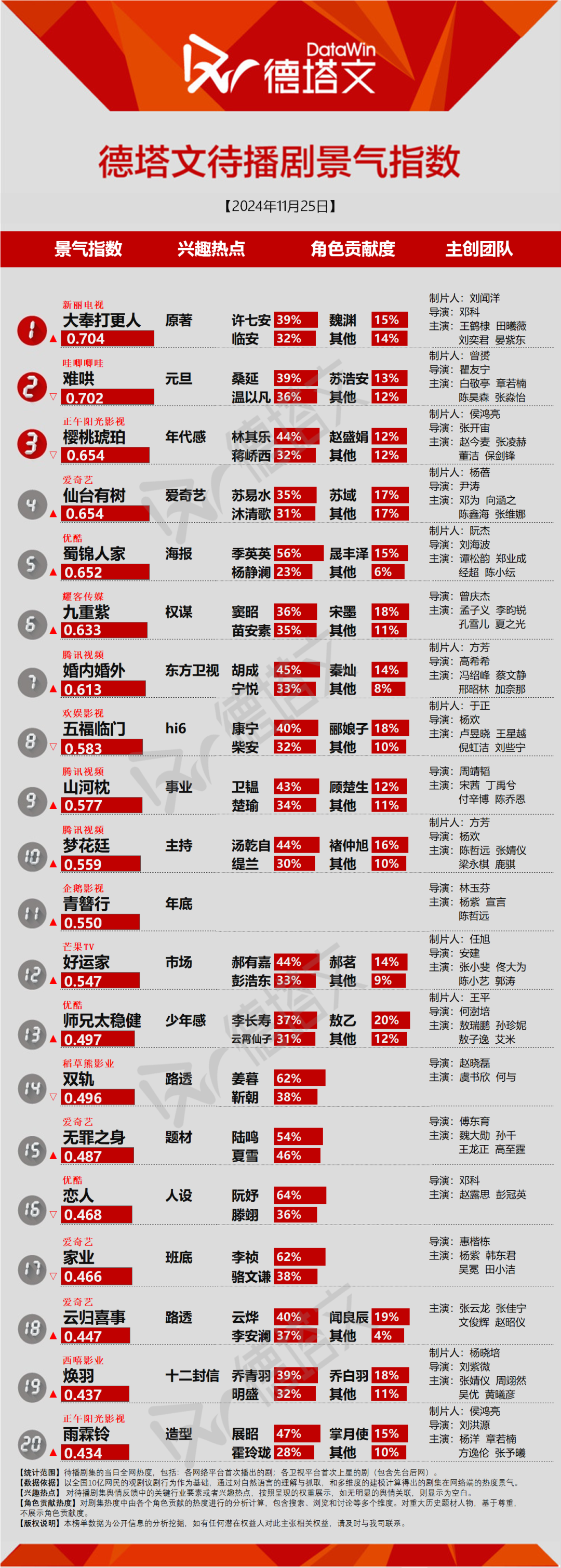 4、数据覆盖首次上星的电视剧和首次播出的网剧。
