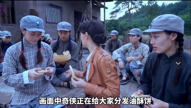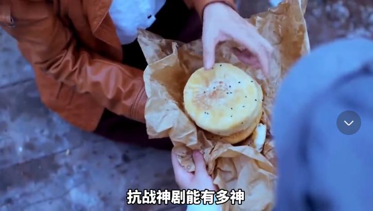 可能是为了体现条件艰苦,所以领头的军人给大家分发芝麻油酥烧饼,别说是抗战剧了,就算是小编现在看着这个饼,也觉得很好吃啊。