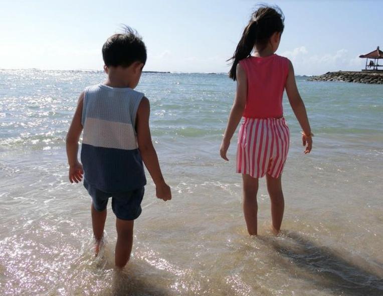 江宏杰带着7岁的小爱酱和4岁的小小杰到海边度假,单身爸爸带着一儿一女的温馨画面也是获得大家的点赞。