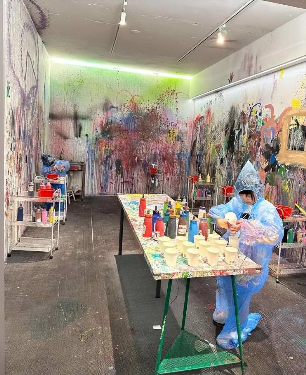11月26日,江宏杰分享女儿玩绘画的照片。