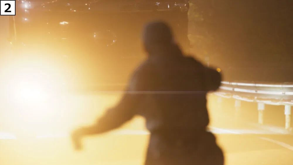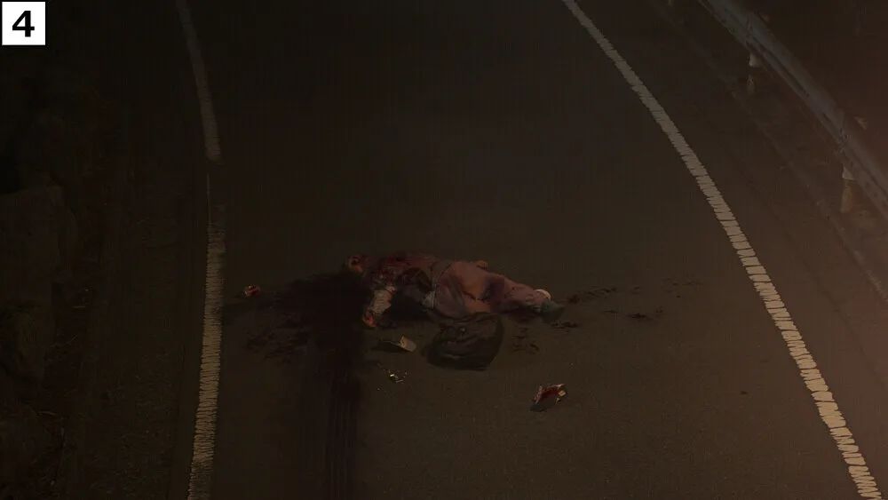 佐佐木被卡车碾压的场景虽然看起来像是一个连续的镜头,但其实是由两个镜头拼接而成的。
